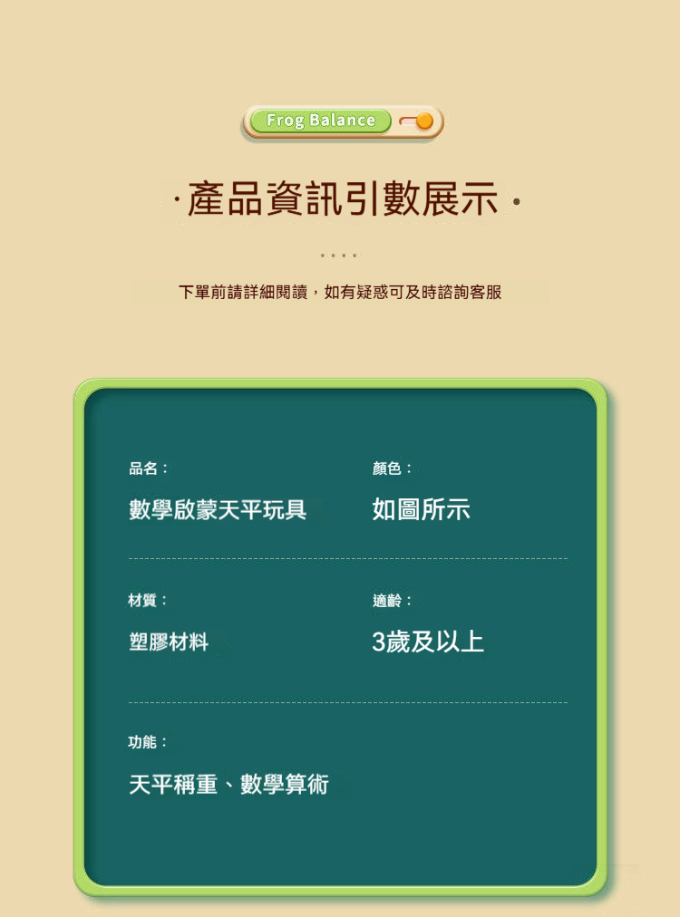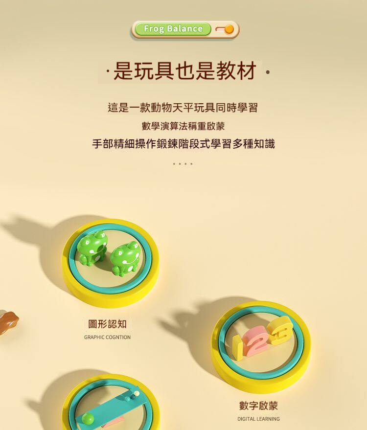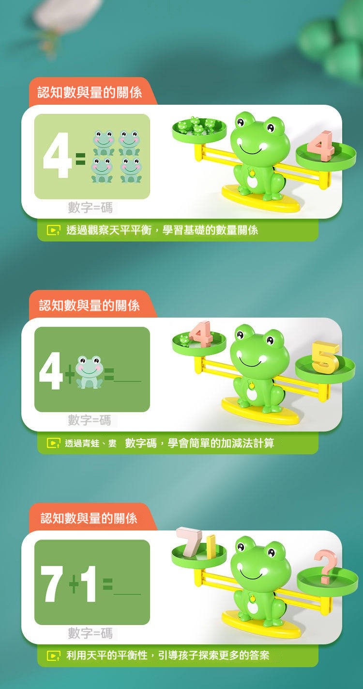 ✨這款「兒童青蛙天平秤」將抽象的數字、加減概念,變成具體可見、可觸摸的天平遊戲。✨可愛的青蛙造型,搭配彩色數字砝碼與小青蛙,讓孩子在「平衡」的遊戲中,理解數字的大小、加減法的原理,培養邏輯思維與解決問題的能力。✨從此,數學不再枯燥,而是充滿樂趣的探索之旅!✨