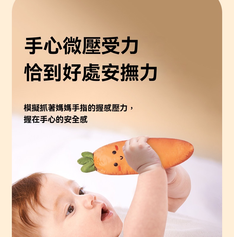 ✅迎接家中新成員的到來,總想給寶寶最溫柔的呵護。✅這款專為0-3個月新生兒及小月齡寶寶設計的「防驚跳安撫手握蘿蔔」,以可愛的造型與貼心的功能,成為寶寶人生第一階段的親密夥伴,給足滿滿的安全感。
