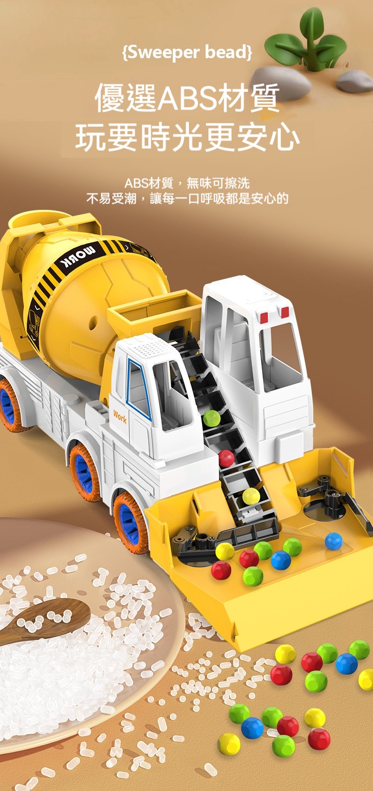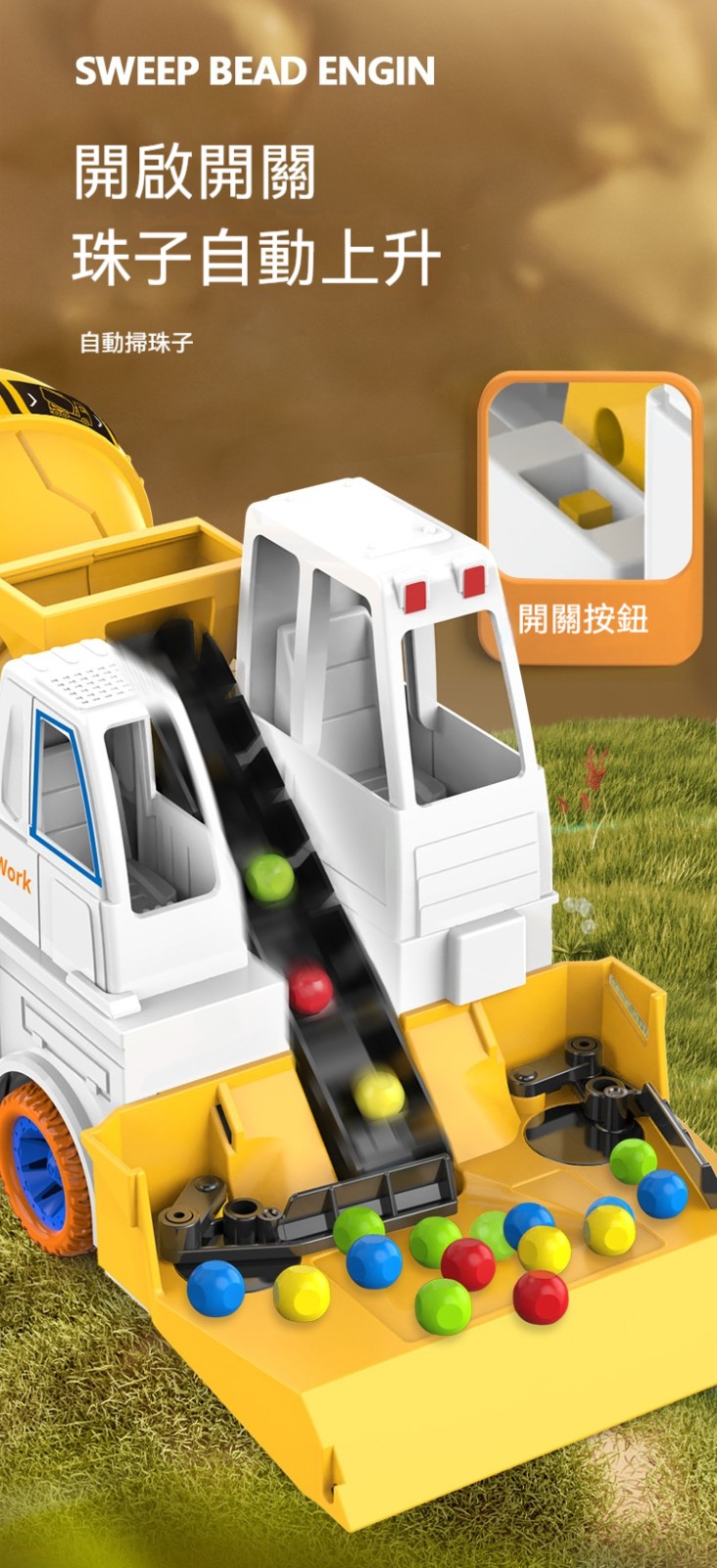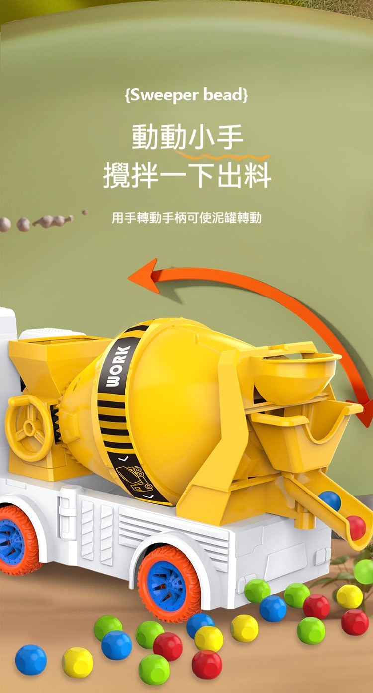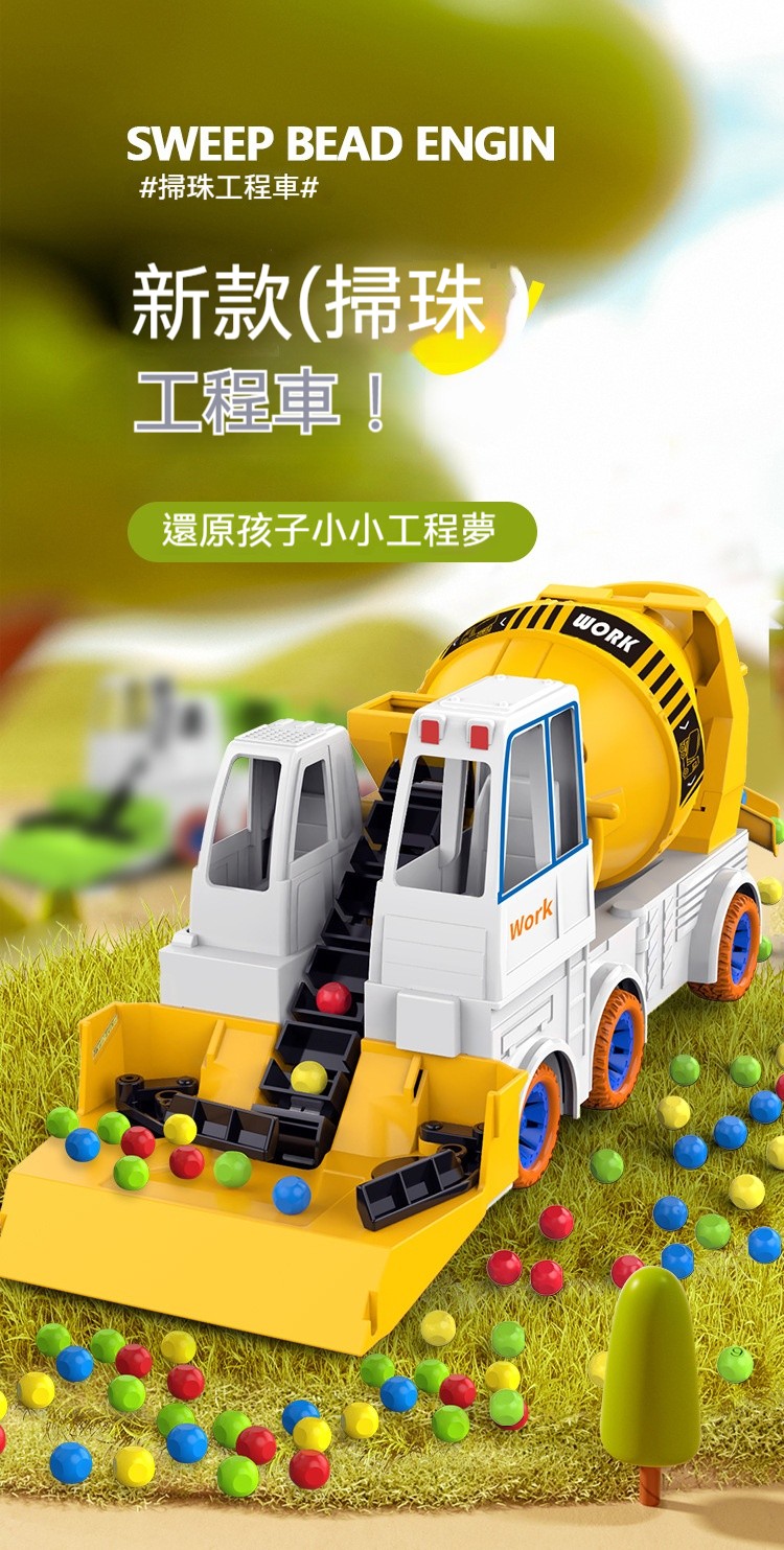 ✅這款「新款大號工程車滑行玩具」,將孩子最愛的工程車主題與趣味掃珠子遊戲完美結合!✅帥氣的水泥攪拌車造型,搭配電動掃珠子功能,車子一邊滑行,一邊把地上的彩色珠子「吃」進攪拌桶裡。既是滑行工程車,又是互動益智玩具,一車兩玩,樂趣加倍!✅