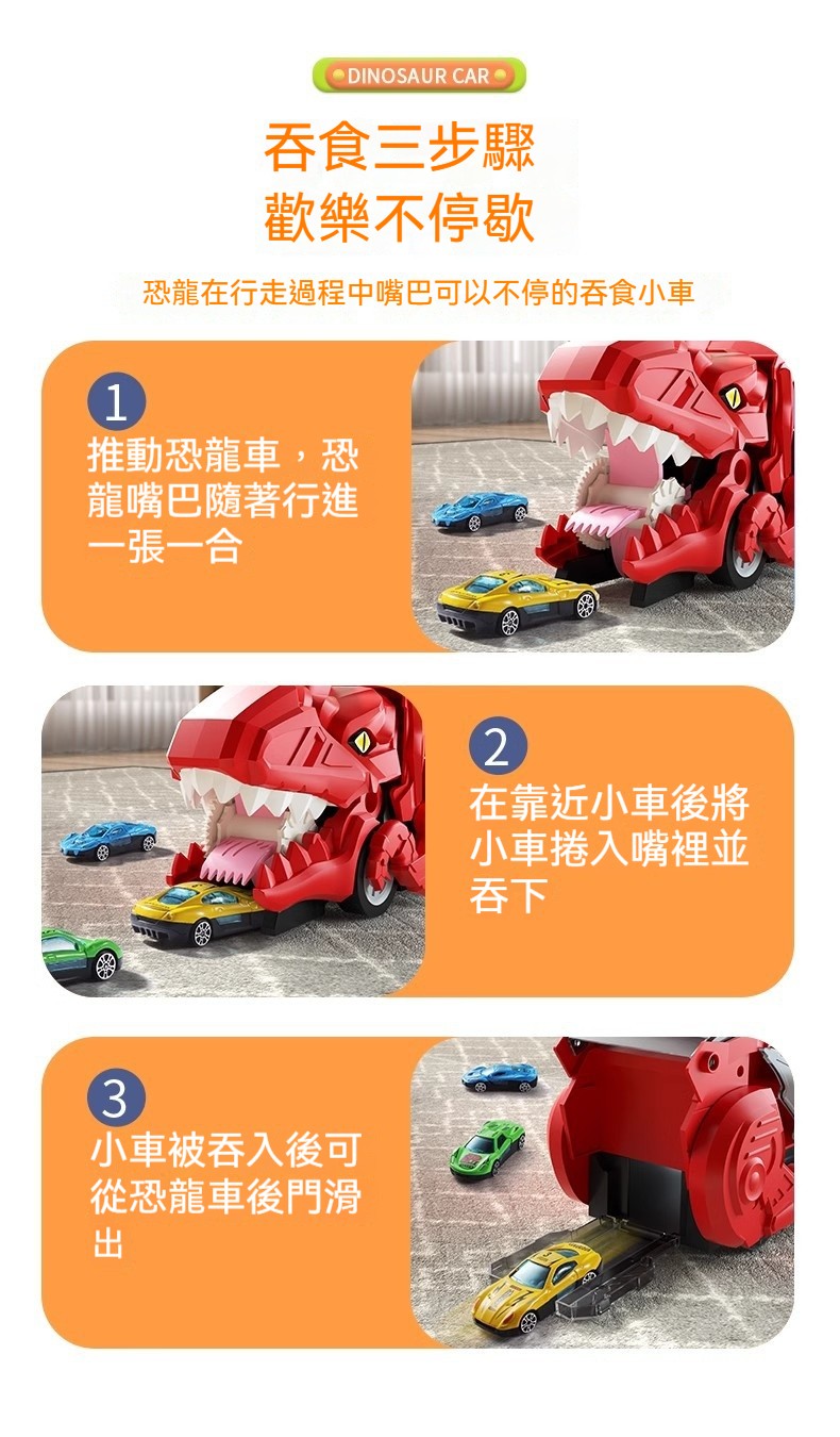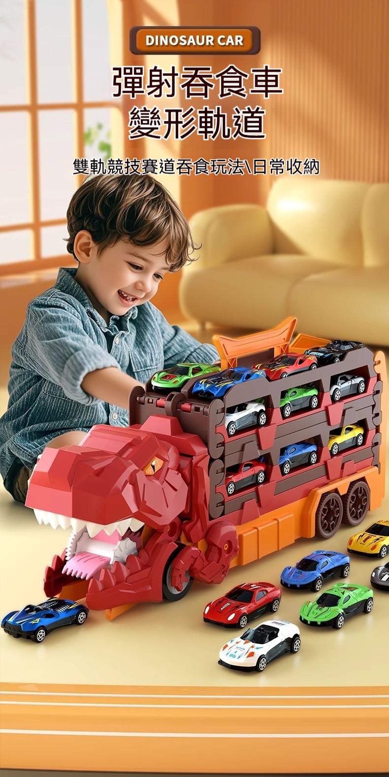 ✅這款「兒童恐龍吞食軌道車」,將孩子最愛的兩大元素——恐龍與汽車——完美結合!✅可愛的恐龍張大嘴巴,等著吞下從軌道滑下來的合金小汽車;層層疊疊的軌道設計,讓小車飛馳穿梭,最後「咻——」掉進恐龍肚子裡!✅結合工程車主題與刺激的軌道遊戲,讓小小車迷與恐龍迷一次滿足,玩到停不下來!✅