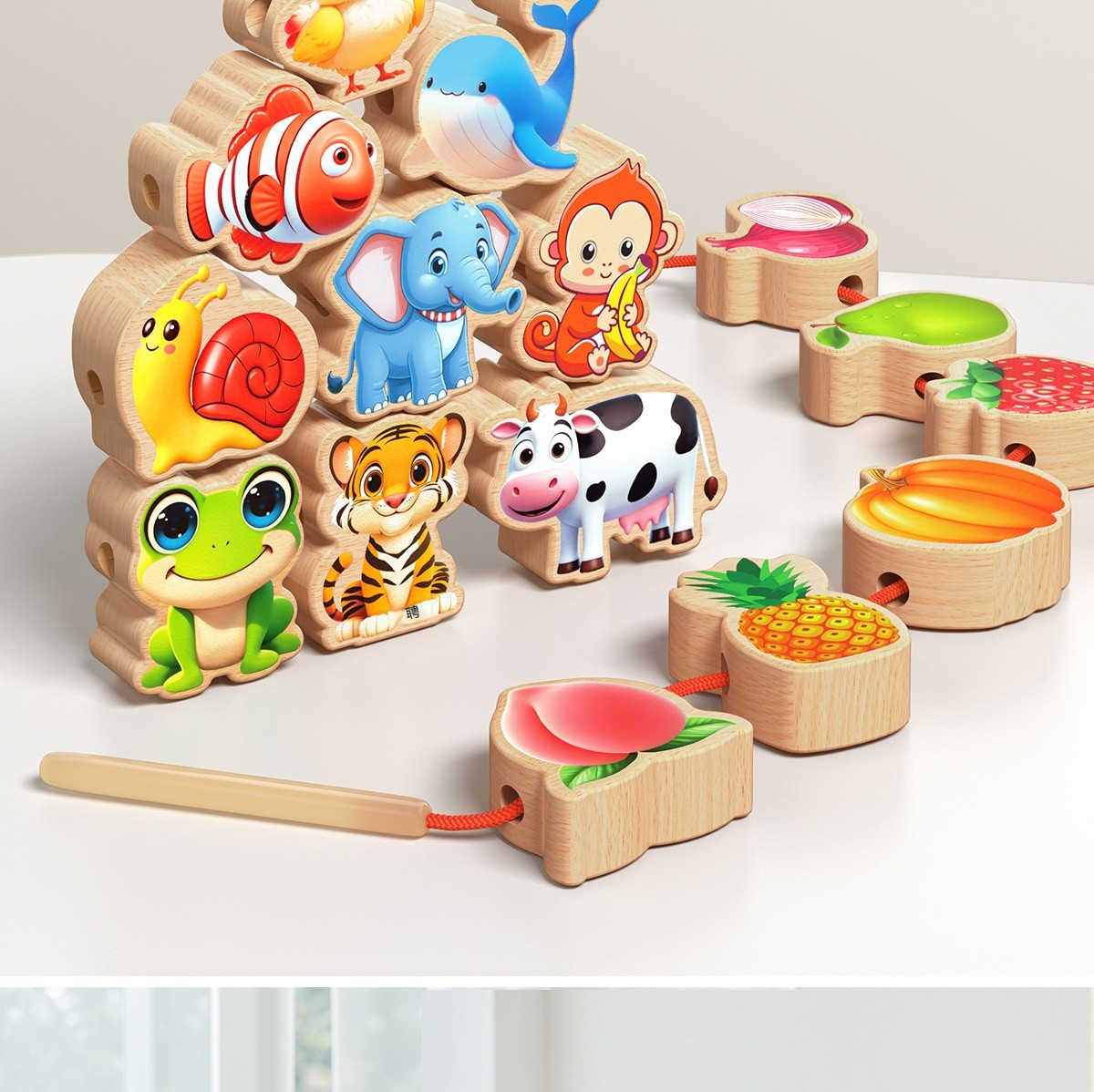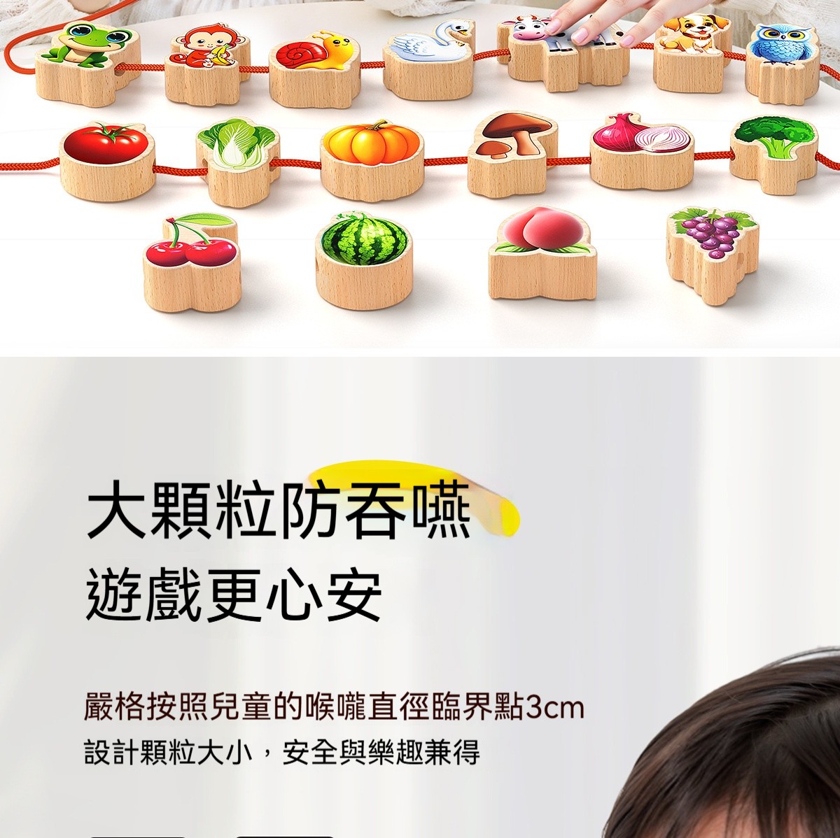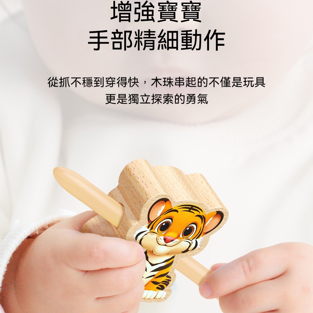 「兒童實木串珠益智玩具」是一款專為幼兒設計的早教教具,透過穿線、串珠的遊戲,鍛鍊寶寶的手部小肌肉、手眼協調與專注力。天然實木材質,圓潤無毛刺,讓寶貝在安全的環境中,享受動手操作的樂趣,為未來的書寫、繪畫打下良好基礎!