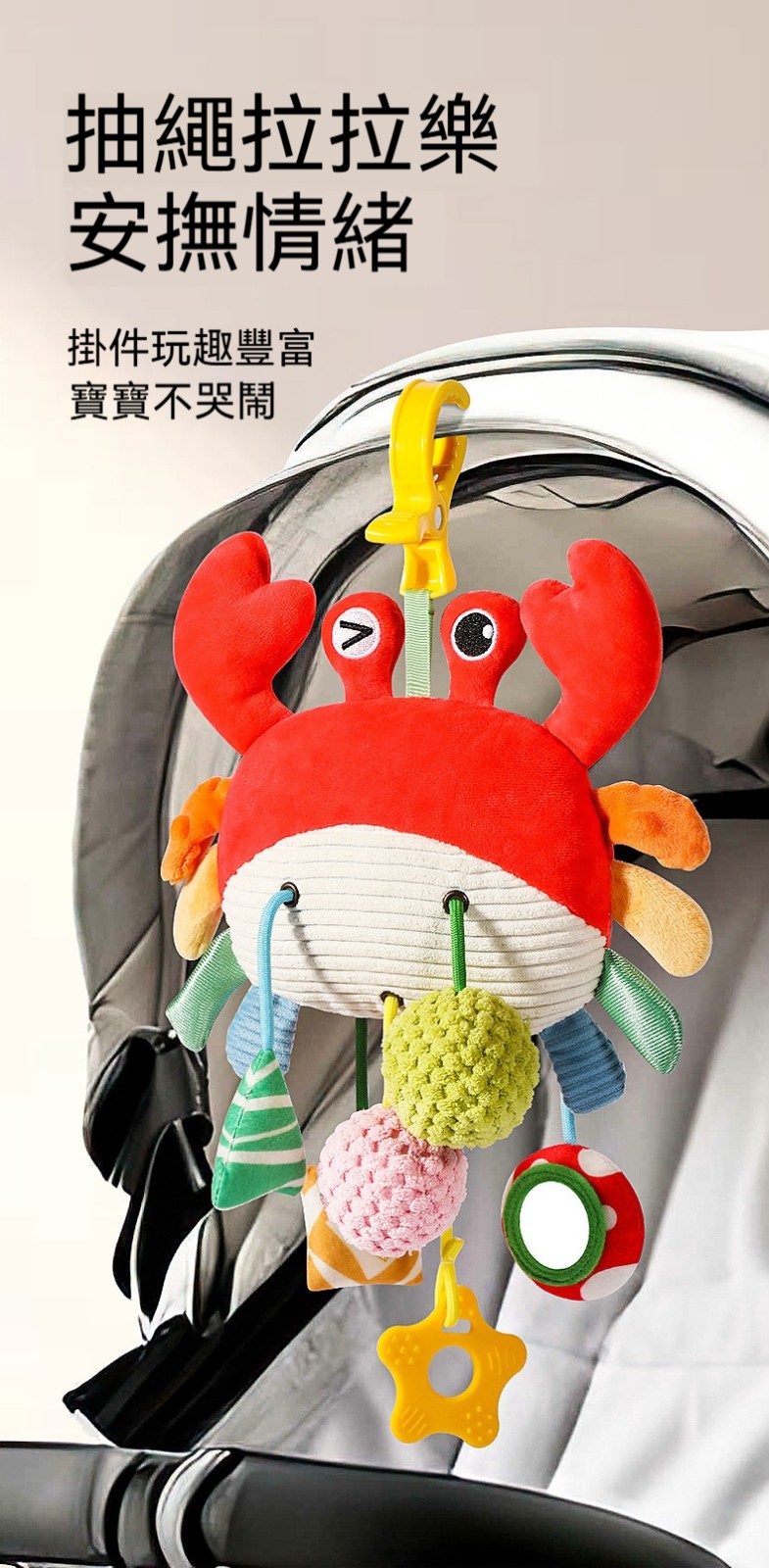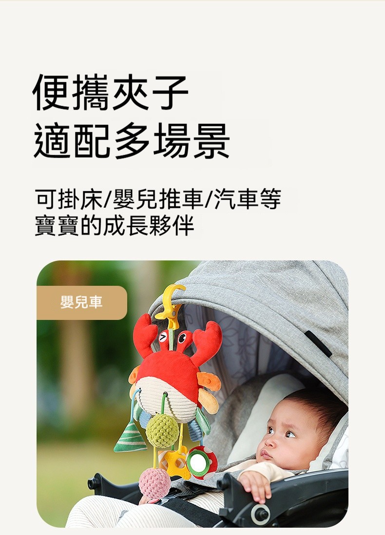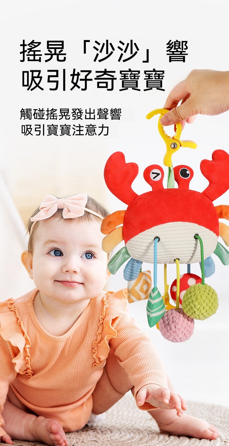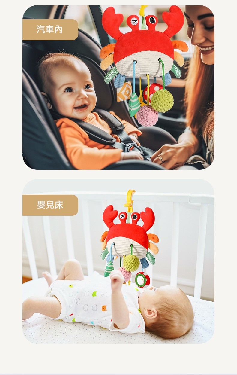 ✨這款「拉拉樂床鈴」是專為嬰幼兒設計的布藝安撫玩具,可輕鬆懸掛在嬰兒床、推車、安全座椅、汽車後座,陪伴寶寶度過每一個旅程。✨柔軟的布藝材質,觸感舒適不傷肌膚;✨拉動即響的搖鈴設計,吸引寶寶注意力,鍛鍊抓握能力與手眼協調。✨