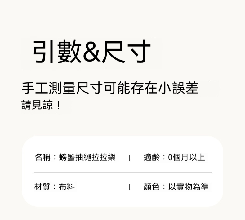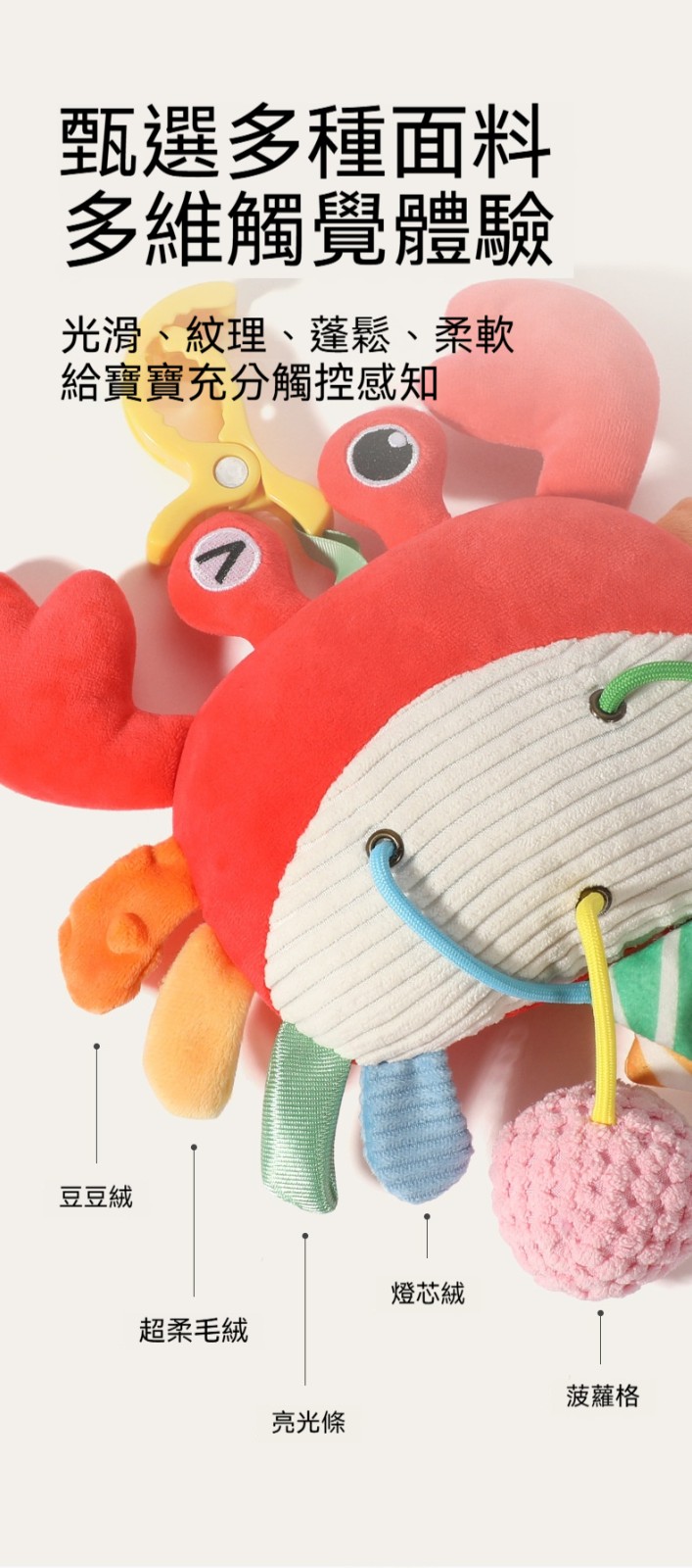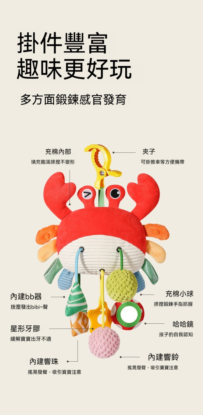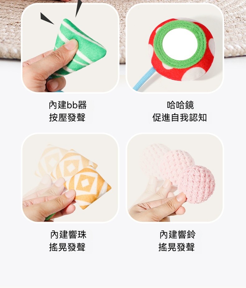 ✨這款「拉拉樂床鈴」是專為嬰幼兒設計的布藝安撫玩具,可輕鬆懸掛在嬰兒床、推車、安全座椅、汽車後座,陪伴寶寶度過每一個旅程。✨柔軟的布藝材質,觸感舒適不傷肌膚;✨拉動即響的搖鈴設計,吸引寶寶注意力,鍛鍊抓握能力與手眼協調。✨